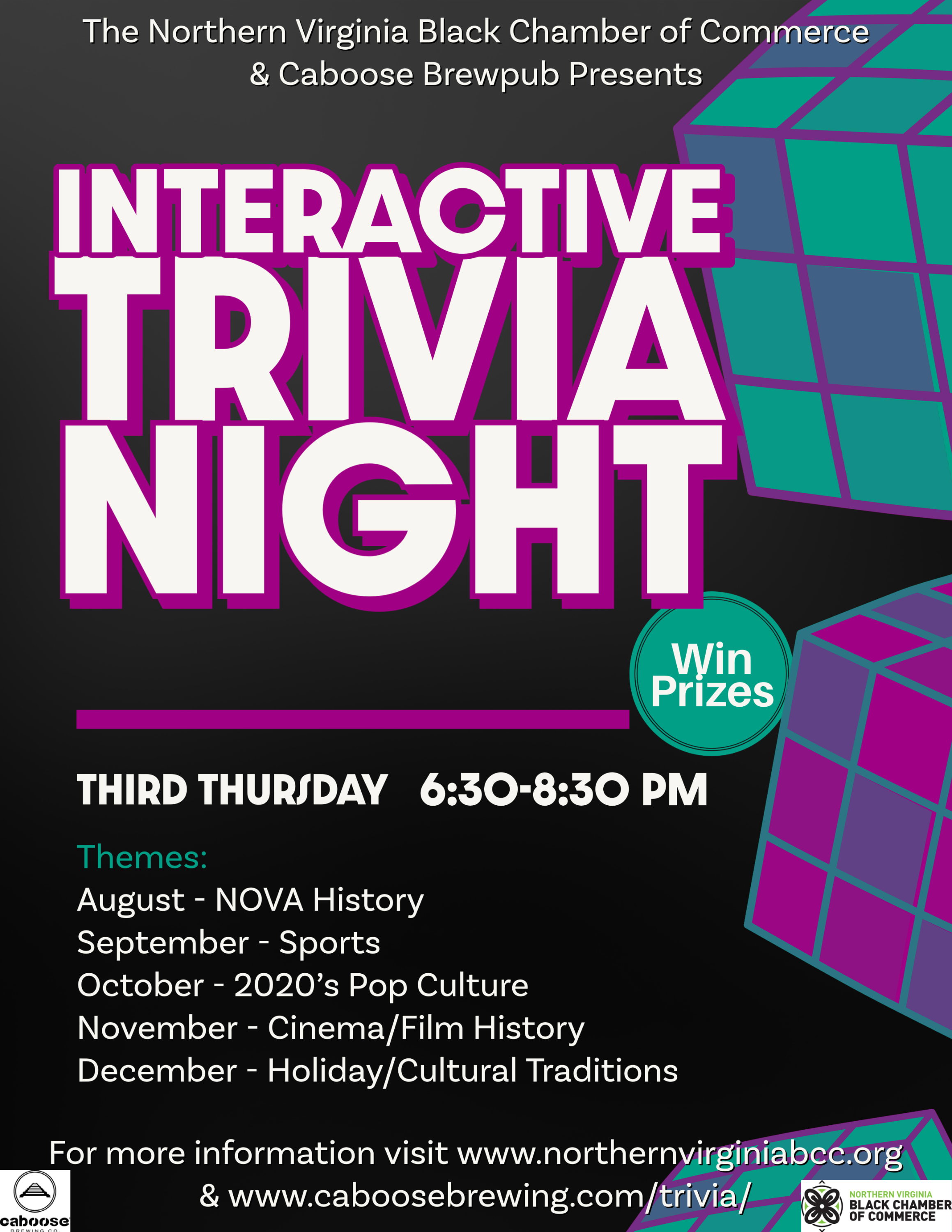 Join the NVBCC for Community Trivia Night! Invite work colleagues , create a team table, order from the Caboose menu and let's see how much you know about CINEMA/FILM HISTORY! We will give away gift cards and prizes for the winning team. Great opportunity to network for business and professional connections. Open to the entire DMV, we are grateful to Caboose Commons for co-hosting this event!Images