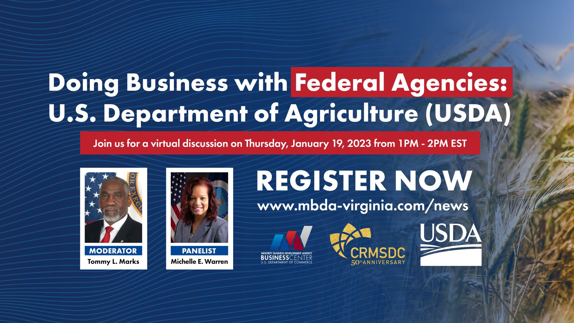 Our panelist will discuss how to do business with USDA and how our MBE’s can gain access to government contracts. They will also share important insights, tools, and training resources to arm our MBE community with what they need to know.