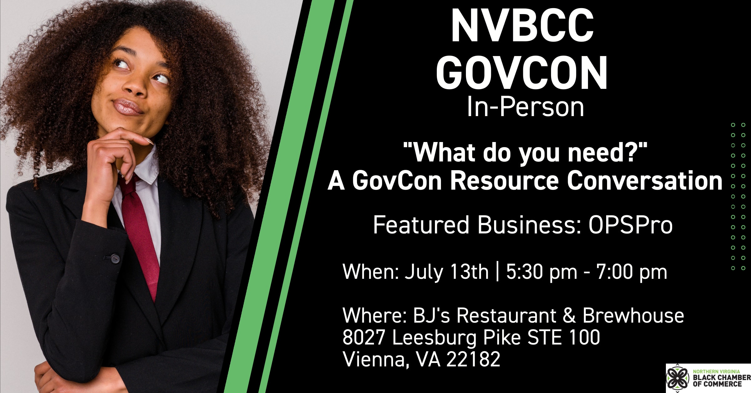 We want to meet you and ask, "What do you need?" As the Government Contracting Committee for the Northern Virginia Black Chamber of Commerce, we have answers to your questions and will be your resource. Where do I get funding? What is a cage number, and how do I obtain one? What is an RFP?