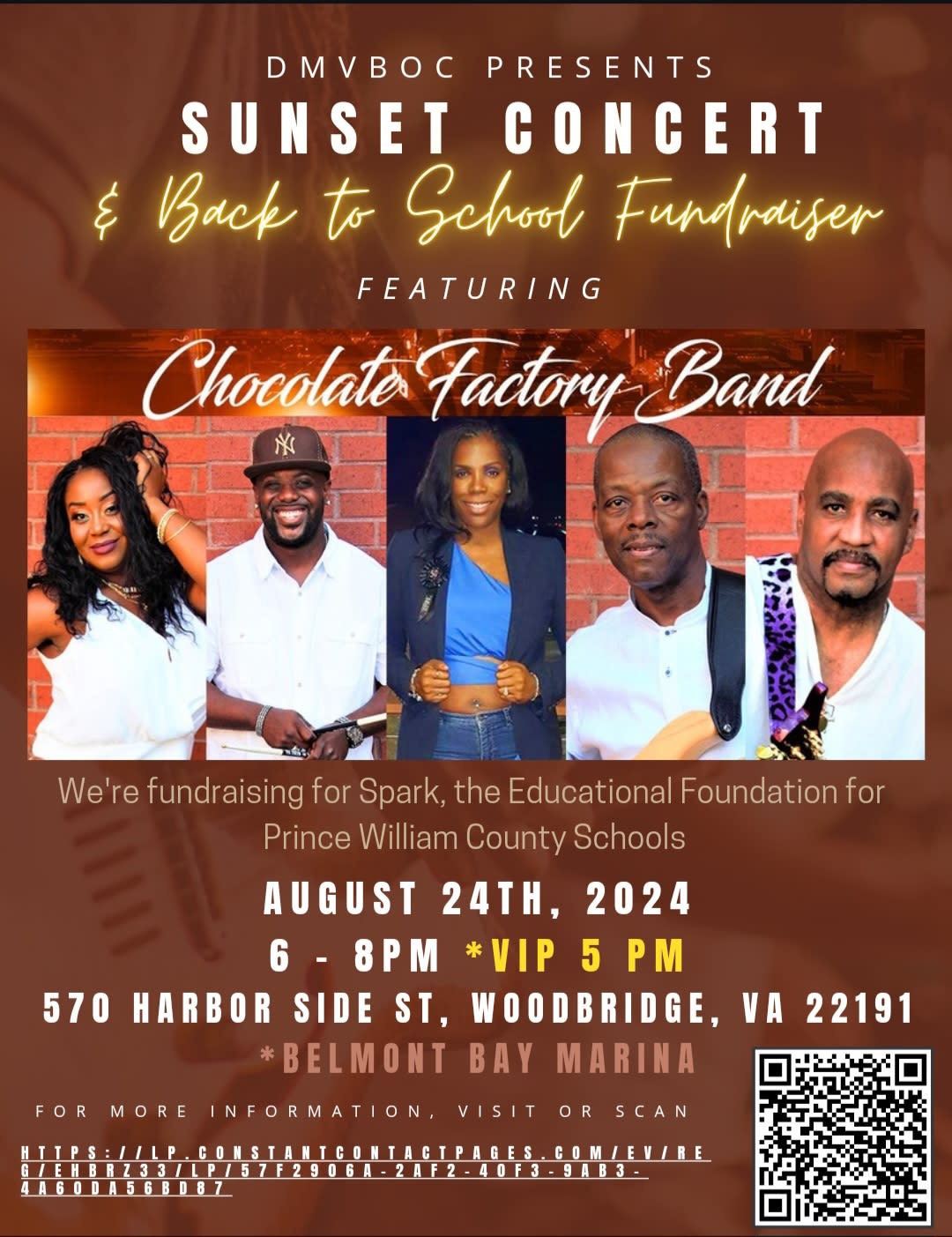 Prepare to groove and support a great cause at our epic 2024 summer concert series! We're fundraising for Spark, the Educational Foundation for Prince WIlliam County Schools, with a memorable night at Belmont Bay Marina. Exciting news- the Chocolate Factory Band will headline this event.